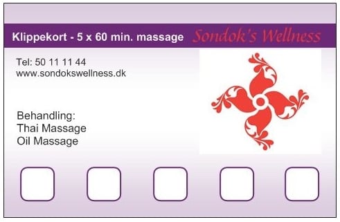 * Klippekort - 5 x 60 min. Massage Normal 2,250Kr.